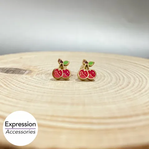 Red Cherry Stainless Steel Earrings | 紅櫻桃不鏽鋼耳環